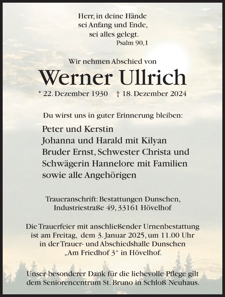 Hier finden Sie alle Traueranzeigen aus der Zeitung, die bisher für Werner Ullrich erschienen sind. Weitere Traueranzeigen, die in der Zeitung erscheinen, werden hier ebenfalls aufgelistet