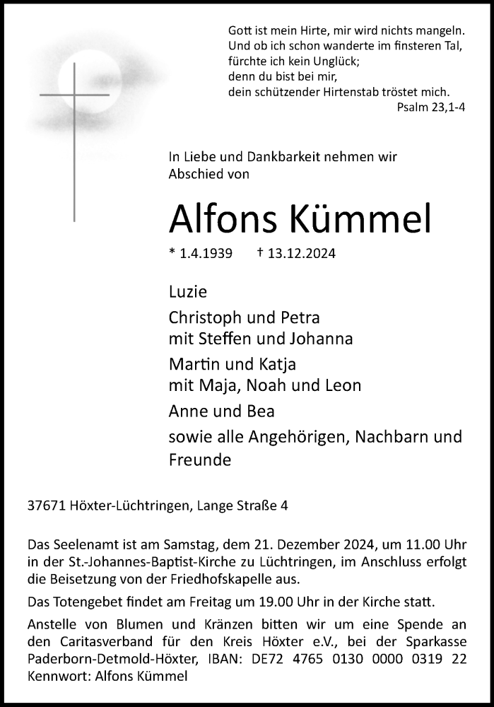 Hier finden Sie alle Traueranzeigen aus der Zeitung, die bisher für Alfons Kümmel erschienen sind. Weitere Traueranzeigen, die in der Zeitung erscheinen, werden hier ebenfalls aufgelistet