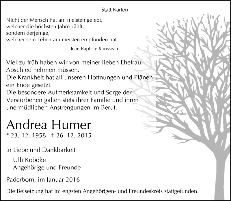 Hier finden Sie alle Traueranzeigen aus der Zeitung, die bisher für Andrea Humer erschienen sind. Weitere Traueranzeigen, die in der Zeitung erscheinen, werden hier ebenfalls aufgelistet