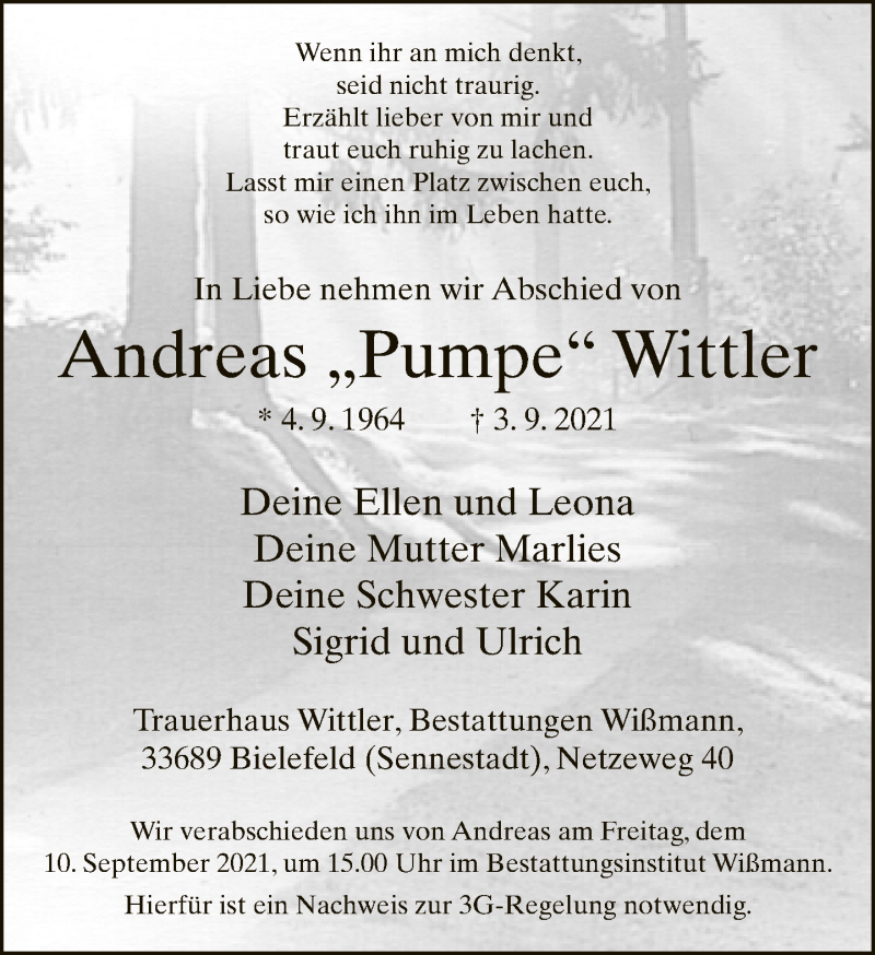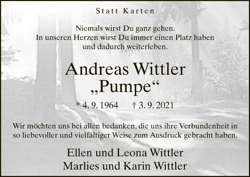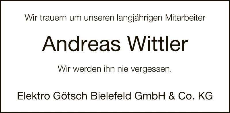 Hier finden Sie alle Traueranzeigen aus der Zeitung, die bisher für Andreas Wittler erschienen sind. Weitere Traueranzeigen, die in der Zeitung erscheinen, werden hier ebenfalls aufgelistet