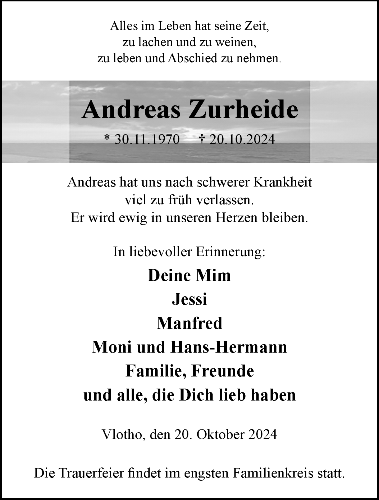 Hier finden Sie alle Traueranzeigen aus der Zeitung, die bisher für Andreas Zurheide erschienen sind. Weitere Traueranzeigen, die in der Zeitung erscheinen, werden hier ebenfalls aufgelistet