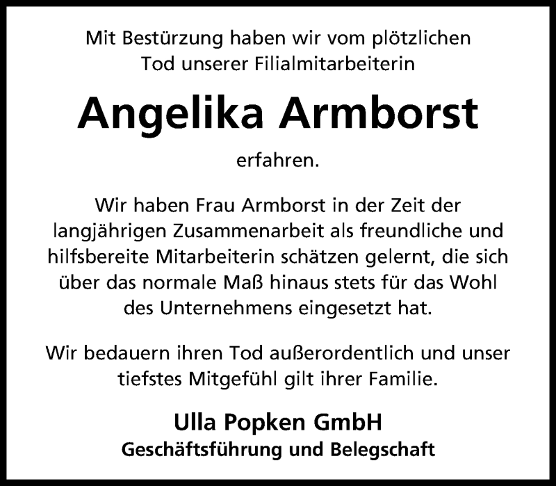 Hier finden Sie alle Traueranzeigen aus der Zeitung, die bisher für Angelika Armborst erschienen sind. Weitere Traueranzeigen, die in der Zeitung erscheinen, werden hier ebenfalls aufgelistet