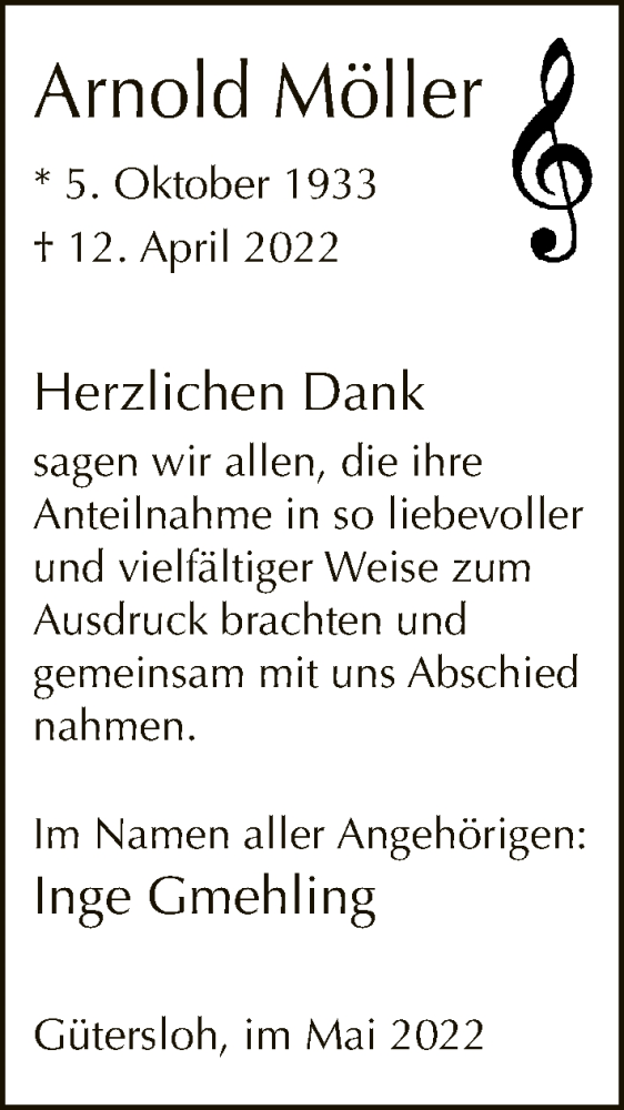 Hier finden Sie alle Traueranzeigen aus der Zeitung, die bisher für Arnold Möller erschienen sind. Weitere Traueranzeigen, die in der Zeitung erscheinen, werden hier ebenfalls aufgelistet
