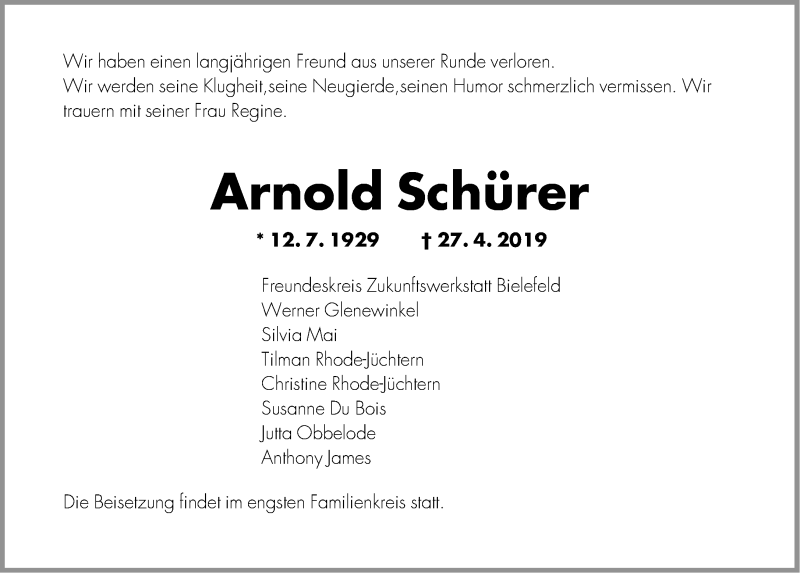 Hier finden Sie alle Traueranzeigen aus der Zeitung, die bisher für Arnold Schürer erschienen sind. Weitere Traueranzeigen, die in der Zeitung erscheinen, werden hier ebenfalls aufgelistet