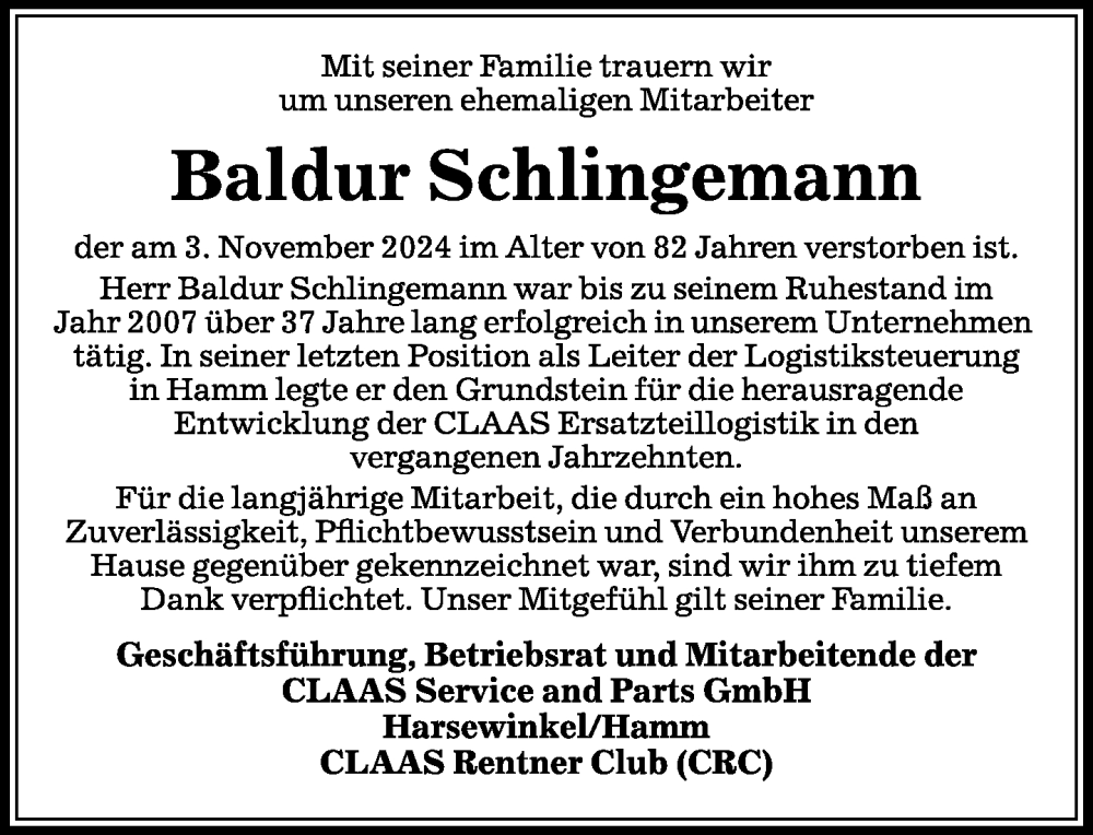 Hier finden Sie alle Traueranzeigen aus der Zeitung, die bisher für Baldur Schlingemann erschienen sind. Weitere Traueranzeigen, die in der Zeitung erscheinen, werden hier ebenfalls aufgelistet