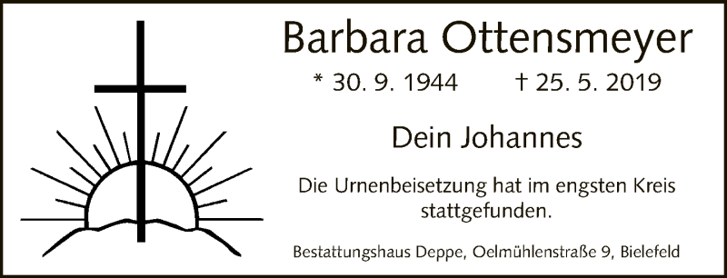 Hier finden Sie alle Traueranzeigen aus der Zeitung, die bisher für Barbara Ottensmeyer erschienen sind. Weitere Traueranzeigen, die in der Zeitung erscheinen, werden hier ebenfalls aufgelistet