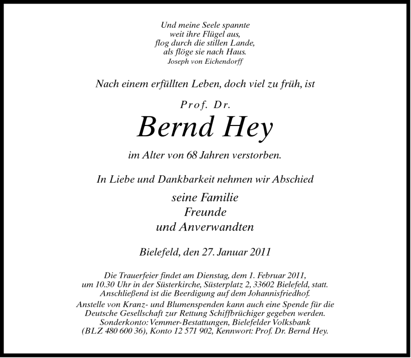 Hier finden Sie alle Traueranzeigen aus der Zeitung, die bisher für Bernd Hey erschienen sind. Weitere Traueranzeigen, die in der Zeitung erscheinen, werden hier ebenfalls aufgelistet