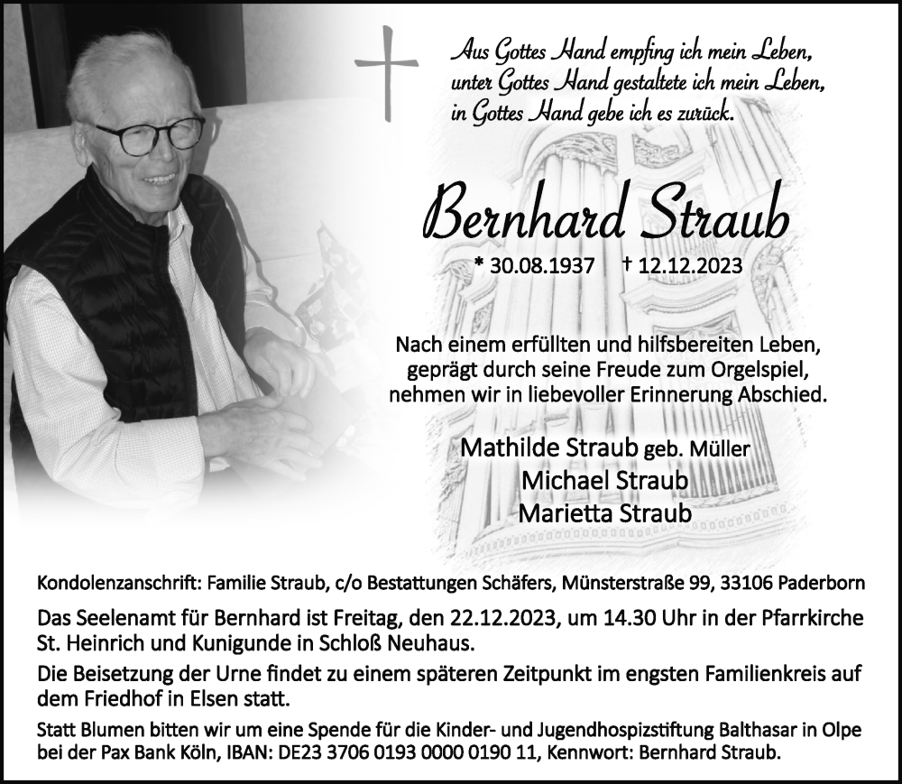 Hier finden Sie alle Traueranzeigen aus der Zeitung, die bisher für Bernhard Straub erschienen sind. Weitere Traueranzeigen, die in der Zeitung erscheinen, werden hier ebenfalls aufgelistet