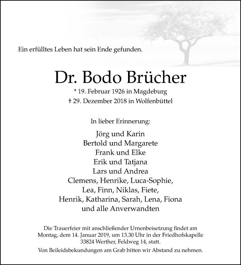 Hier finden Sie alle Traueranzeigen aus der Zeitung, die bisher für Bodo Brücher erschienen sind. Weitere Traueranzeigen, die in der Zeitung erscheinen, werden hier ebenfalls aufgelistet
