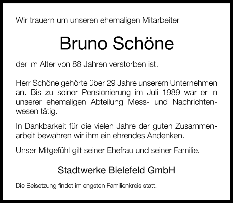 Hier finden Sie alle Traueranzeigen aus der Zeitung, die bisher für Bruno Schöne erschienen sind. Weitere Traueranzeigen, die in der Zeitung erscheinen, werden hier ebenfalls aufgelistet