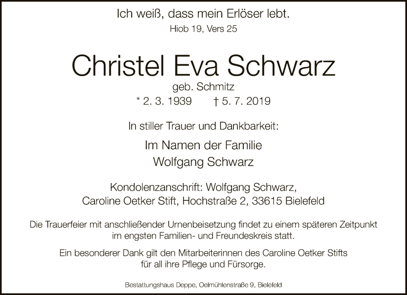 Hier finden Sie alle Traueranzeigen aus der Zeitung, die bisher für Christel Eva Schwarz erschienen sind. Weitere Traueranzeigen, die in der Zeitung erscheinen, werden hier ebenfalls aufgelistet