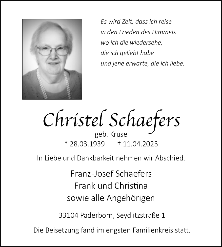 Hier finden Sie alle Traueranzeigen aus der Zeitung, die bisher für Christel Schaefers erschienen sind. Weitere Traueranzeigen, die in der Zeitung erscheinen, werden hier ebenfalls aufgelistet