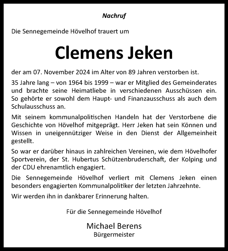 Hier finden Sie alle Traueranzeigen aus der Zeitung, die bisher für Clemens Jeken erschienen sind. Weitere Traueranzeigen, die in der Zeitung erscheinen, werden hier ebenfalls aufgelistet