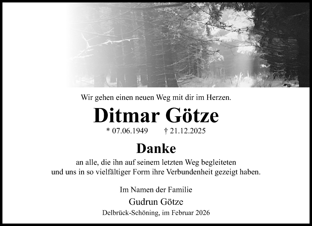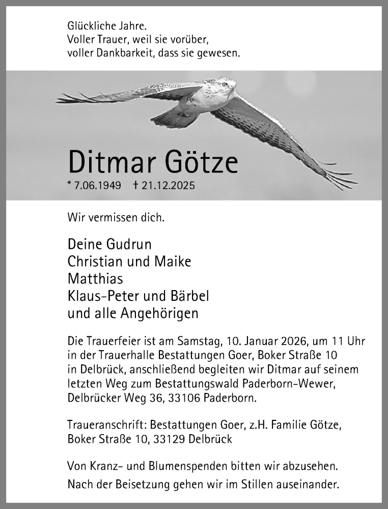 Hier finden Sie alle Traueranzeigen aus der Zeitung, die bisher für Ditmar Götze erschienen sind. Weitere Traueranzeigen, die in der Zeitung erscheinen, werden hier ebenfalls aufgelistet