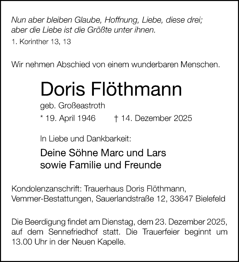 Hier finden Sie alle Traueranzeigen aus der Zeitung, die bisher für Doris Flöthmann erschienen sind. Weitere Traueranzeigen, die in der Zeitung erscheinen, werden hier ebenfalls aufgelistet