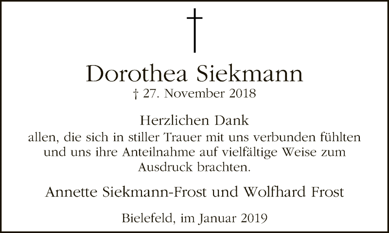 Hier finden Sie alle Traueranzeigen aus der Zeitung, die bisher für Dorothea Siekmann erschienen sind. Weitere Traueranzeigen, die in der Zeitung erscheinen, werden hier ebenfalls aufgelistet