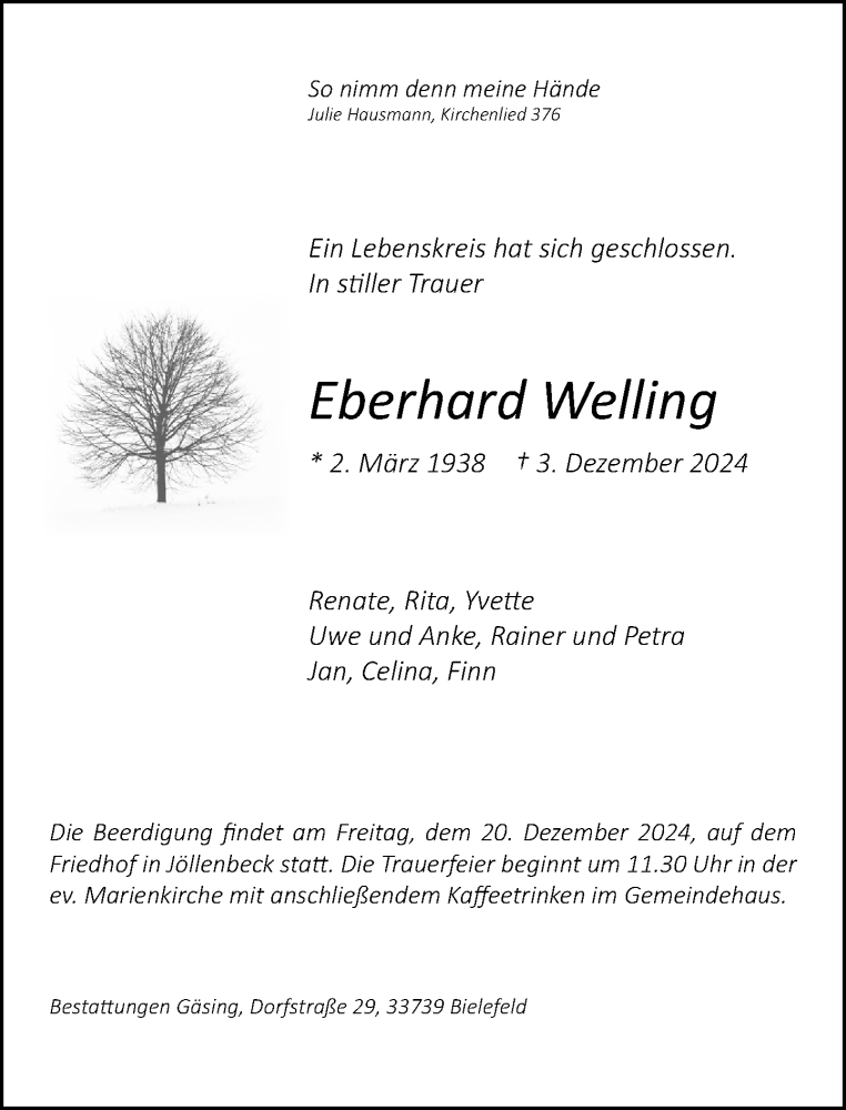 Hier finden Sie alle Traueranzeigen aus der Zeitung, die bisher für Eberhard Welling erschienen sind. Weitere Traueranzeigen, die in der Zeitung erscheinen, werden hier ebenfalls aufgelistet