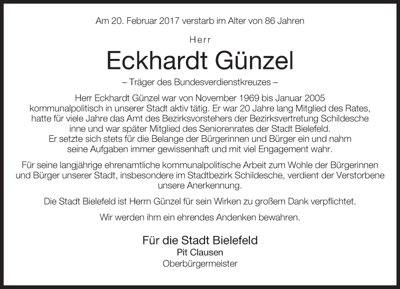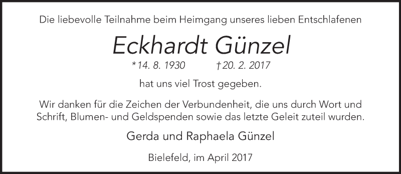 Hier finden Sie alle Traueranzeigen aus der Zeitung, die bisher für Eckhardt Günzel erschienen sind. Weitere Traueranzeigen, die in der Zeitung erscheinen, werden hier ebenfalls aufgelistet