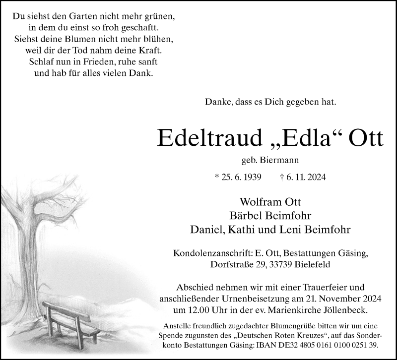 Hier finden Sie alle Traueranzeigen aus der Zeitung, die bisher für Edeltraud Ott erschienen sind. Weitere Traueranzeigen, die in der Zeitung erscheinen, werden hier ebenfalls aufgelistet