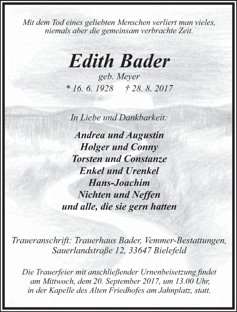 Hier finden Sie alle Traueranzeigen aus der Zeitung, die bisher für Edith Bader erschienen sind. Weitere Traueranzeigen, die in der Zeitung erscheinen, werden hier ebenfalls aufgelistet