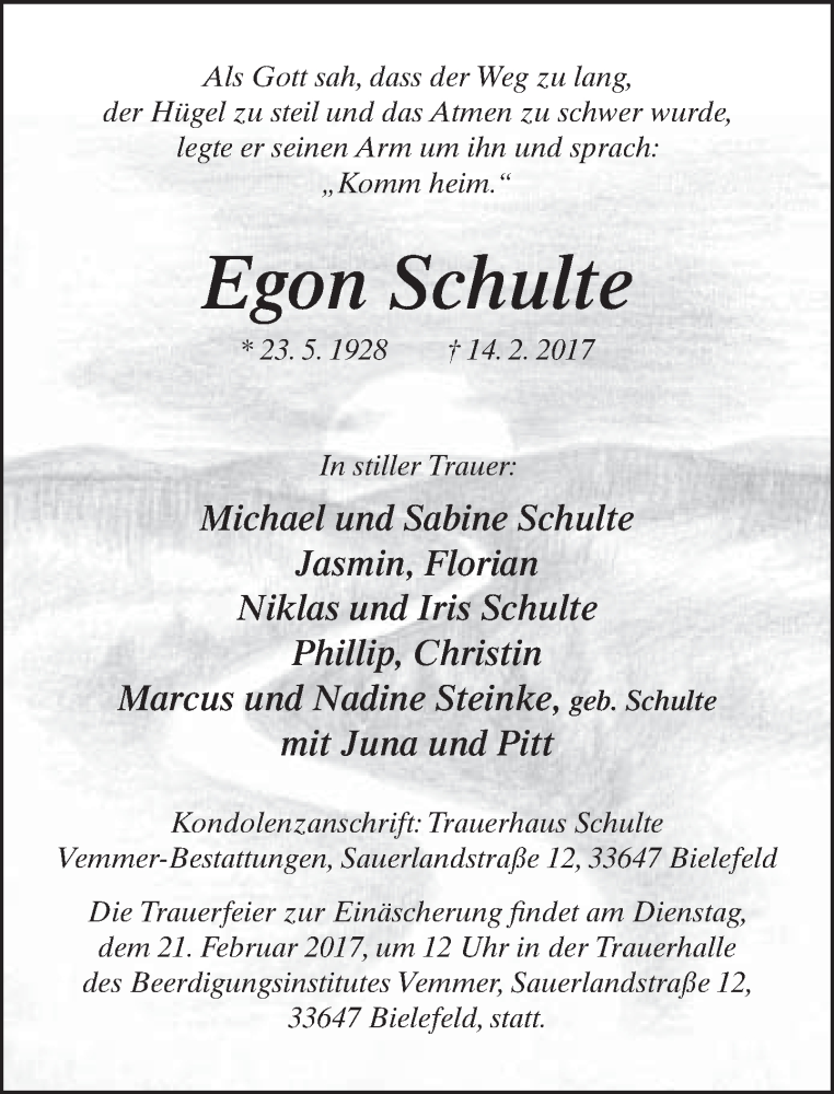 Hier finden Sie alle Traueranzeigen aus der Zeitung, die bisher für Egon Schulte erschienen sind. Weitere Traueranzeigen, die in der Zeitung erscheinen, werden hier ebenfalls aufgelistet