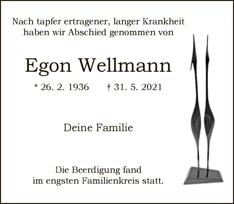 Hier finden Sie alle Traueranzeigen aus der Zeitung, die bisher für Egon Wellmann erschienen sind. Weitere Traueranzeigen, die in der Zeitung erscheinen, werden hier ebenfalls aufgelistet