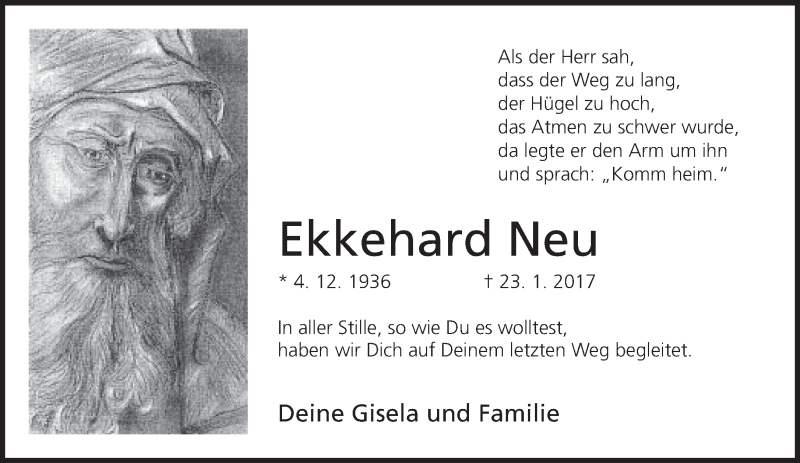 Hier finden Sie alle Traueranzeigen aus der Zeitung, die bisher für Ekkehard Neu erschienen sind. Weitere Traueranzeigen, die in der Zeitung erscheinen, werden hier ebenfalls aufgelistet