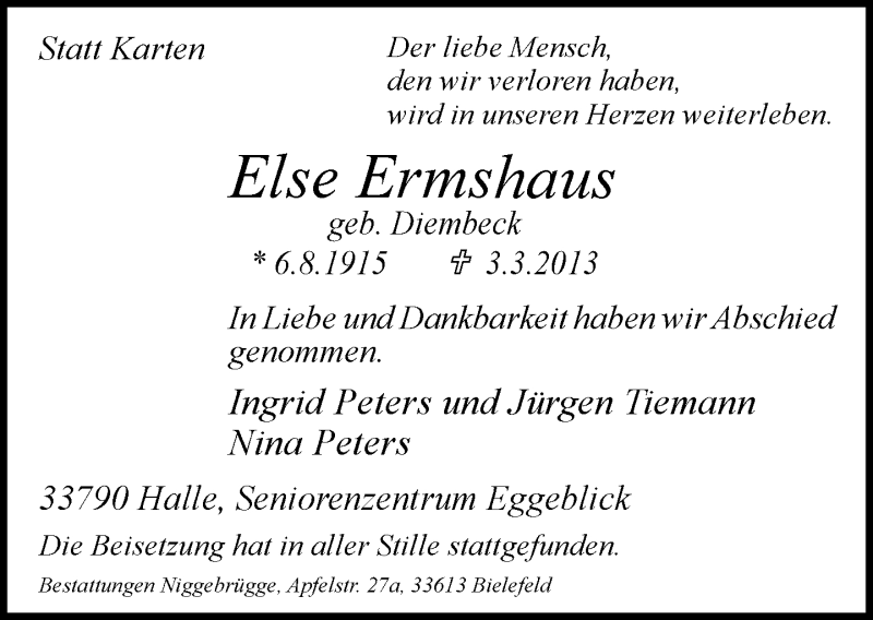 Hier finden Sie alle Traueranzeigen aus der Zeitung, die bisher für Else Ermshaus erschienen sind. Weitere Traueranzeigen, die in der Zeitung erscheinen, werden hier ebenfalls aufgelistet