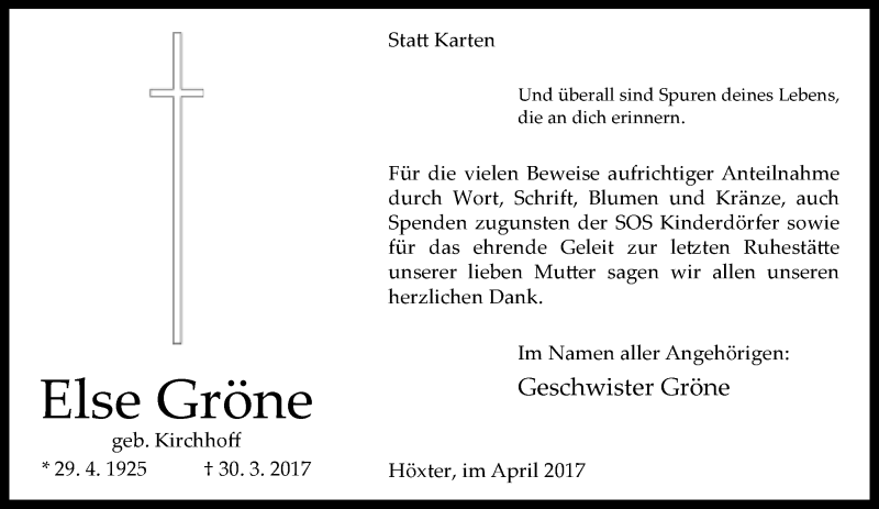 Hier finden Sie alle Traueranzeigen aus der Zeitung, die bisher für Else Gröne erschienen sind. Weitere Traueranzeigen, die in der Zeitung erscheinen, werden hier ebenfalls aufgelistet