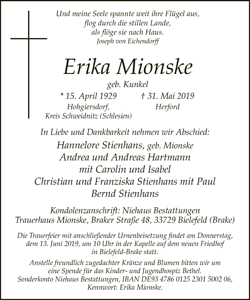 Hier finden Sie alle Traueranzeigen aus der Zeitung, die bisher für Erika Mionske erschienen sind. Weitere Traueranzeigen, die in der Zeitung erscheinen, werden hier ebenfalls aufgelistet