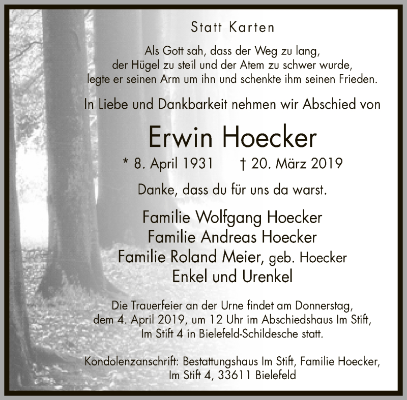 Hier finden Sie alle Traueranzeigen aus der Zeitung, die bisher für Erwin Hoecker erschienen sind. Weitere Traueranzeigen, die in der Zeitung erscheinen, werden hier ebenfalls aufgelistet