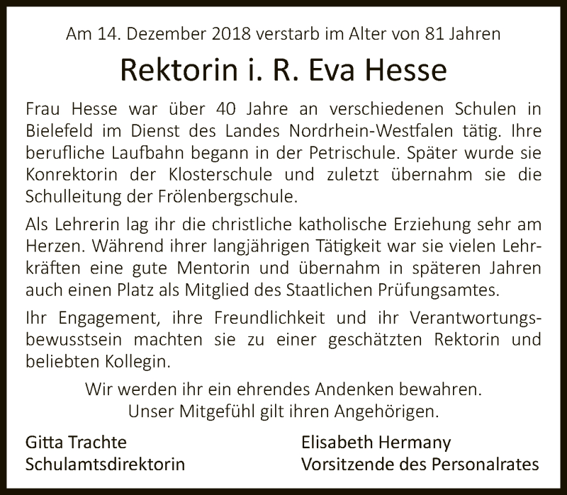 Hier finden Sie alle Traueranzeigen aus der Zeitung, die bisher für Eva Hesse erschienen sind. Weitere Traueranzeigen, die in der Zeitung erscheinen, werden hier ebenfalls aufgelistet