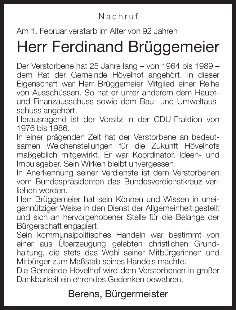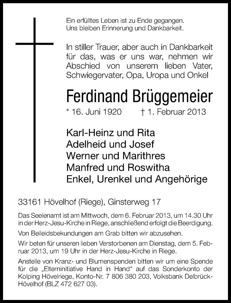 Hier finden Sie alle Traueranzeigen aus der Zeitung, die bisher für Ferdinand Brüggemeier erschienen sind. Weitere Traueranzeigen, die in der Zeitung erscheinen, werden hier ebenfalls aufgelistet