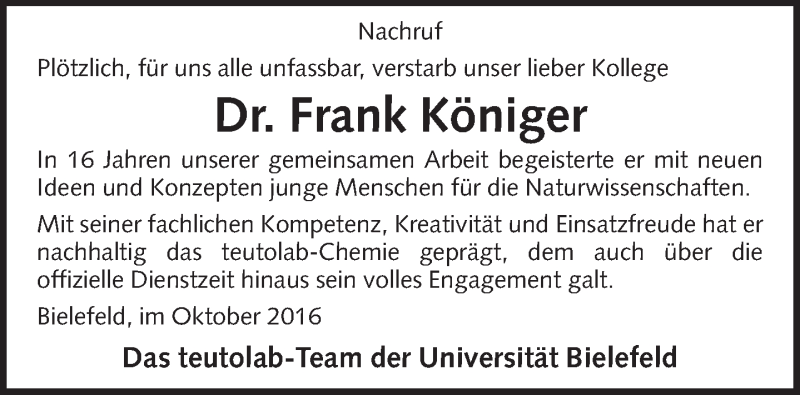 Hier finden Sie alle Traueranzeigen aus der Zeitung, die bisher für Frank Königer erschienen sind. Weitere Traueranzeigen, die in der Zeitung erscheinen, werden hier ebenfalls aufgelistet