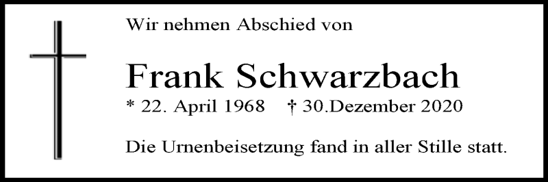 Hier finden Sie alle Traueranzeigen aus der Zeitung, die bisher für Frank Schwarzbach erschienen sind. Weitere Traueranzeigen, die in der Zeitung erscheinen, werden hier ebenfalls aufgelistet