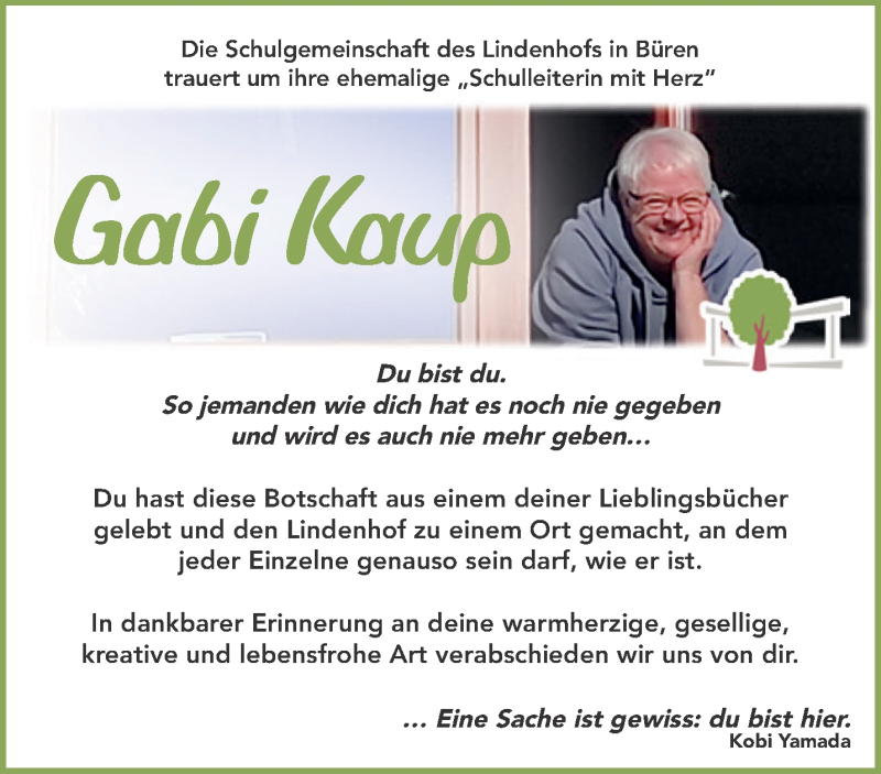Hier finden Sie alle Traueranzeigen aus der Zeitung, die bisher für Gabi Kaup erschienen sind. Weitere Traueranzeigen, die in der Zeitung erscheinen, werden hier ebenfalls aufgelistet