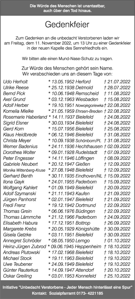 Hier finden Sie alle Traueranzeigen aus der Zeitung, die bisher für Gedenkfeier erschienen sind. Weitere Traueranzeigen, die in der Zeitung erscheinen, werden hier ebenfalls aufgelistet