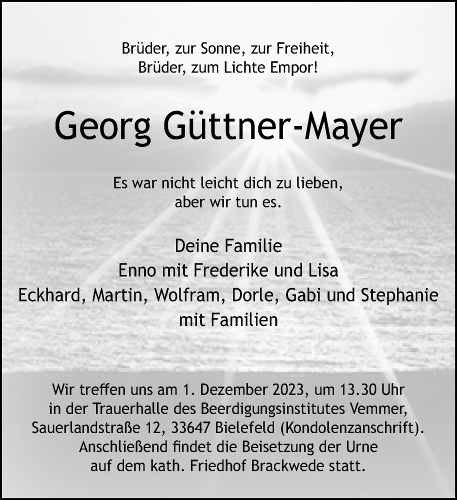 Hier finden Sie alle Traueranzeigen aus der Zeitung, die bisher für Georg Güttner-Mayer erschienen sind. Weitere Traueranzeigen, die in der Zeitung erscheinen, werden hier ebenfalls aufgelistet