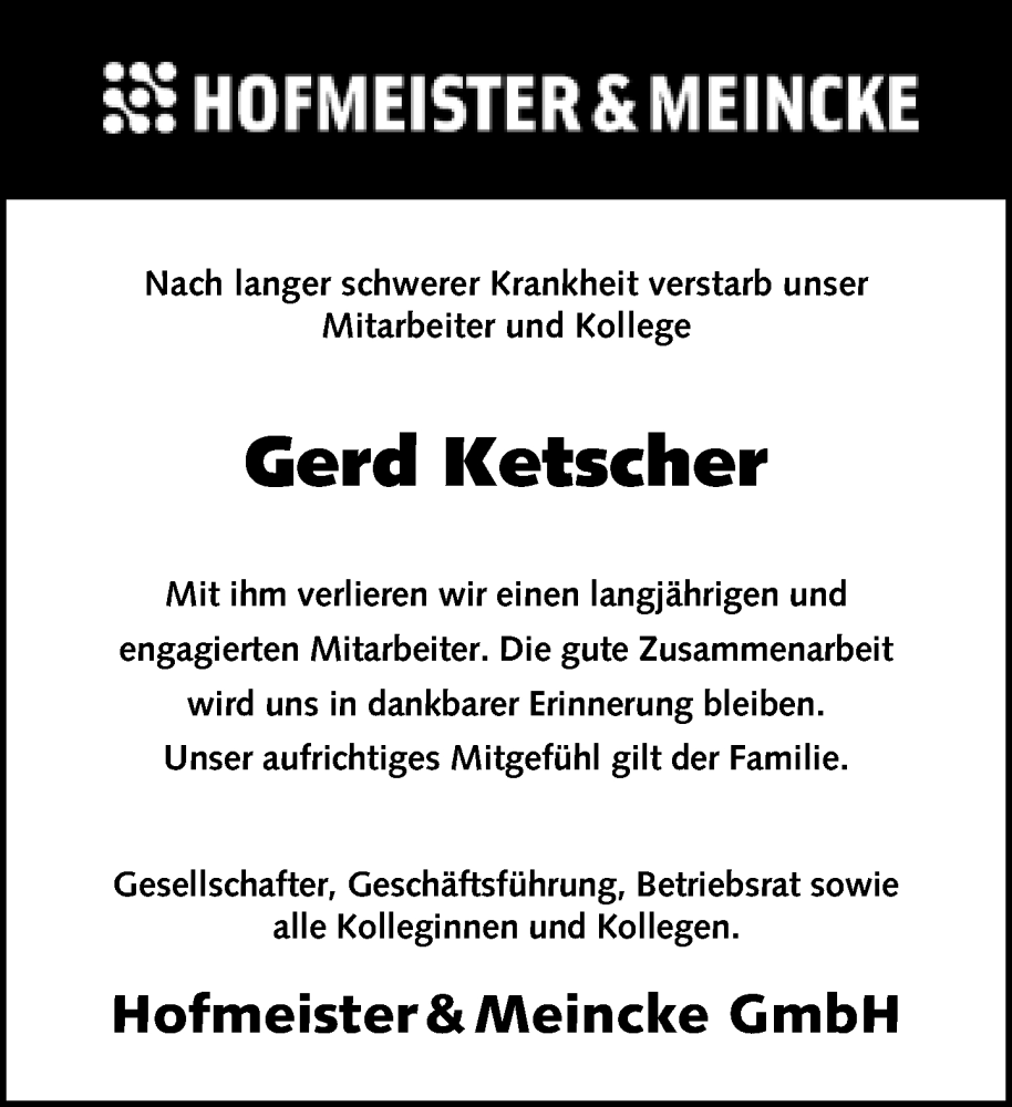 Hier finden Sie alle Traueranzeigen aus der Zeitung, die bisher für Gerd Ketscher erschienen sind. Weitere Traueranzeigen, die in der Zeitung erscheinen, werden hier ebenfalls aufgelistet