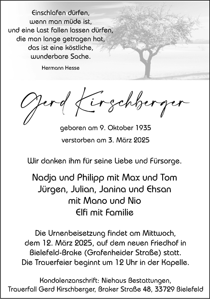 Hier finden Sie alle Traueranzeigen aus der Zeitung, die bisher für Gerd Kirschberger erschienen sind. Weitere Traueranzeigen, die in der Zeitung erscheinen, werden hier ebenfalls aufgelistet