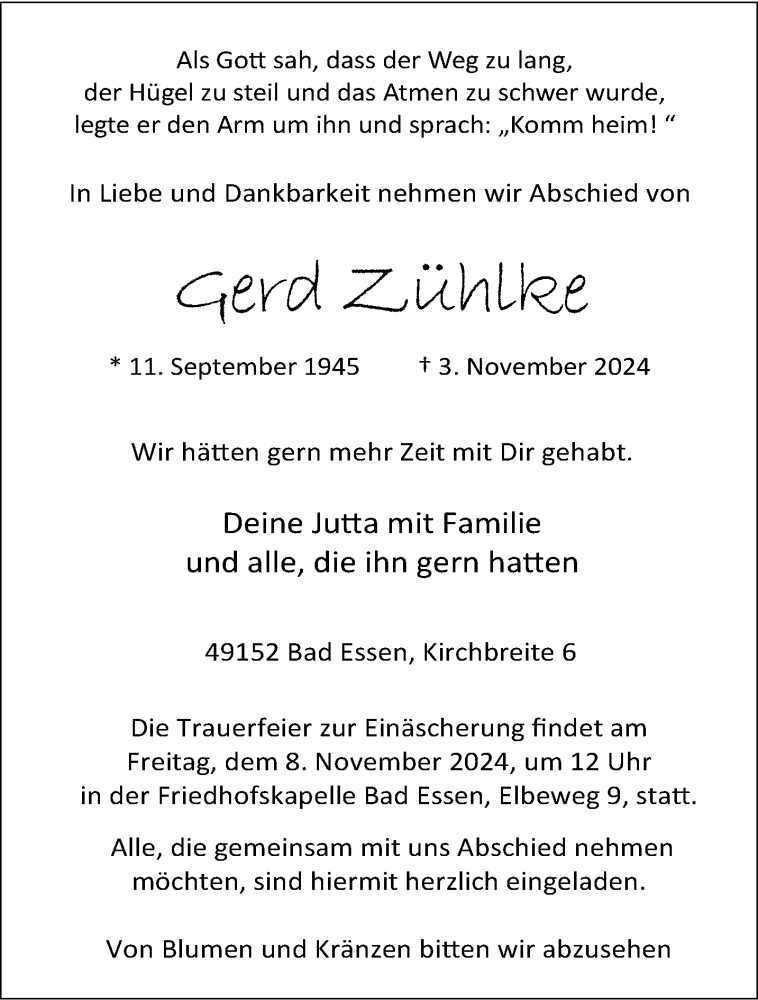 Hier finden Sie alle Traueranzeigen aus der Zeitung, die bisher für Gerd Zühlke erschienen sind. Weitere Traueranzeigen, die in der Zeitung erscheinen, werden hier ebenfalls aufgelistet