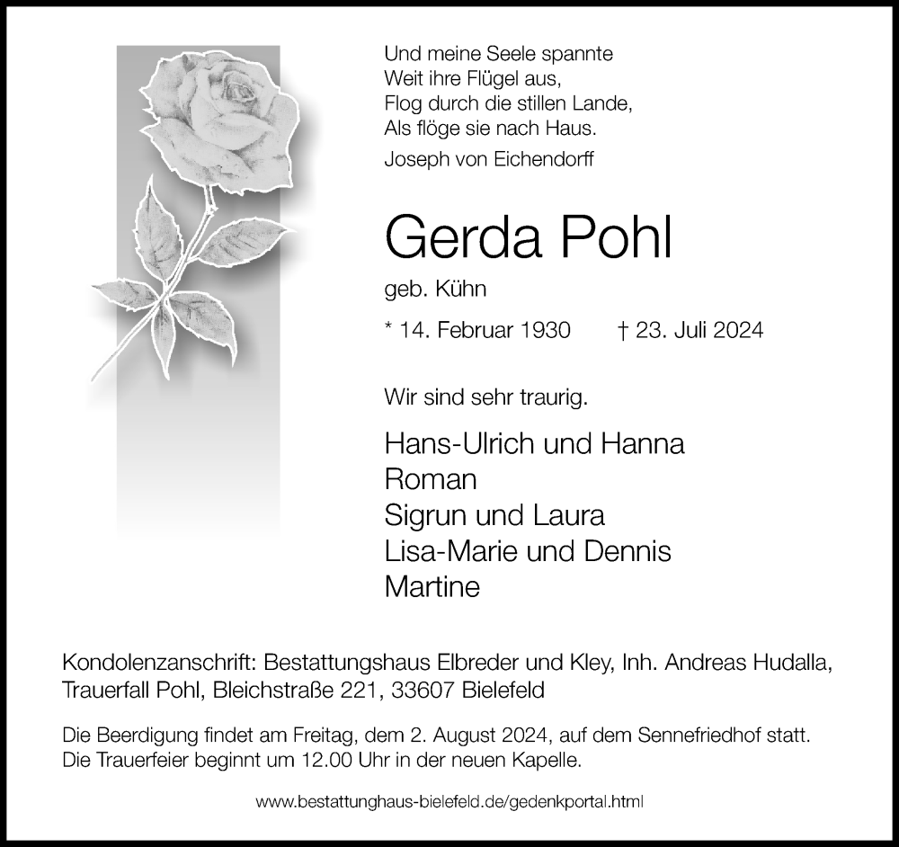 Hier finden Sie alle Traueranzeigen aus der Zeitung, die bisher für Gerda Pohl erschienen sind. Weitere Traueranzeigen, die in der Zeitung erscheinen, werden hier ebenfalls aufgelistet