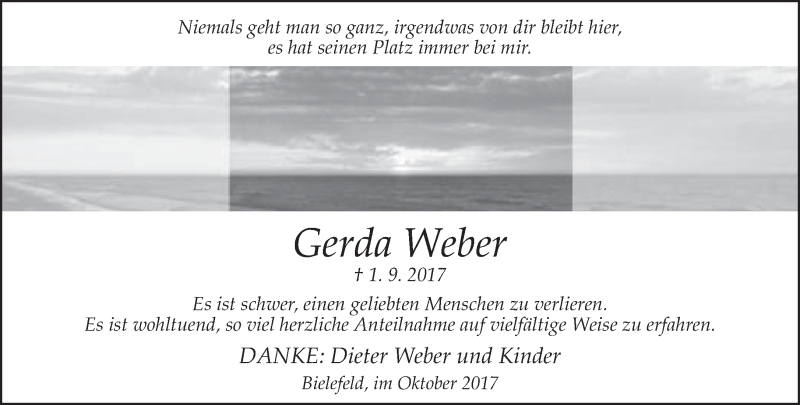 Hier finden Sie alle Traueranzeigen aus der Zeitung, die bisher für Gerda Weber erschienen sind. Weitere Traueranzeigen, die in der Zeitung erscheinen, werden hier ebenfalls aufgelistet