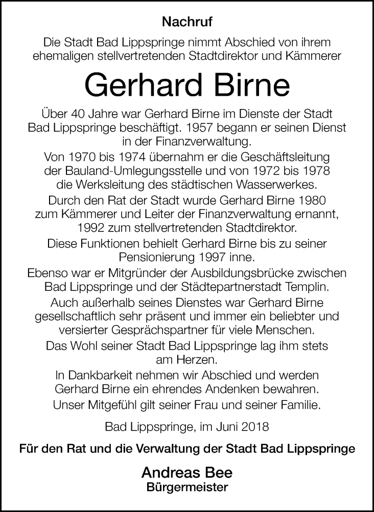 Hier finden Sie alle Traueranzeigen aus der Zeitung, die bisher für Gerhard Birne erschienen sind. Weitere Traueranzeigen, die in der Zeitung erscheinen, werden hier ebenfalls aufgelistet