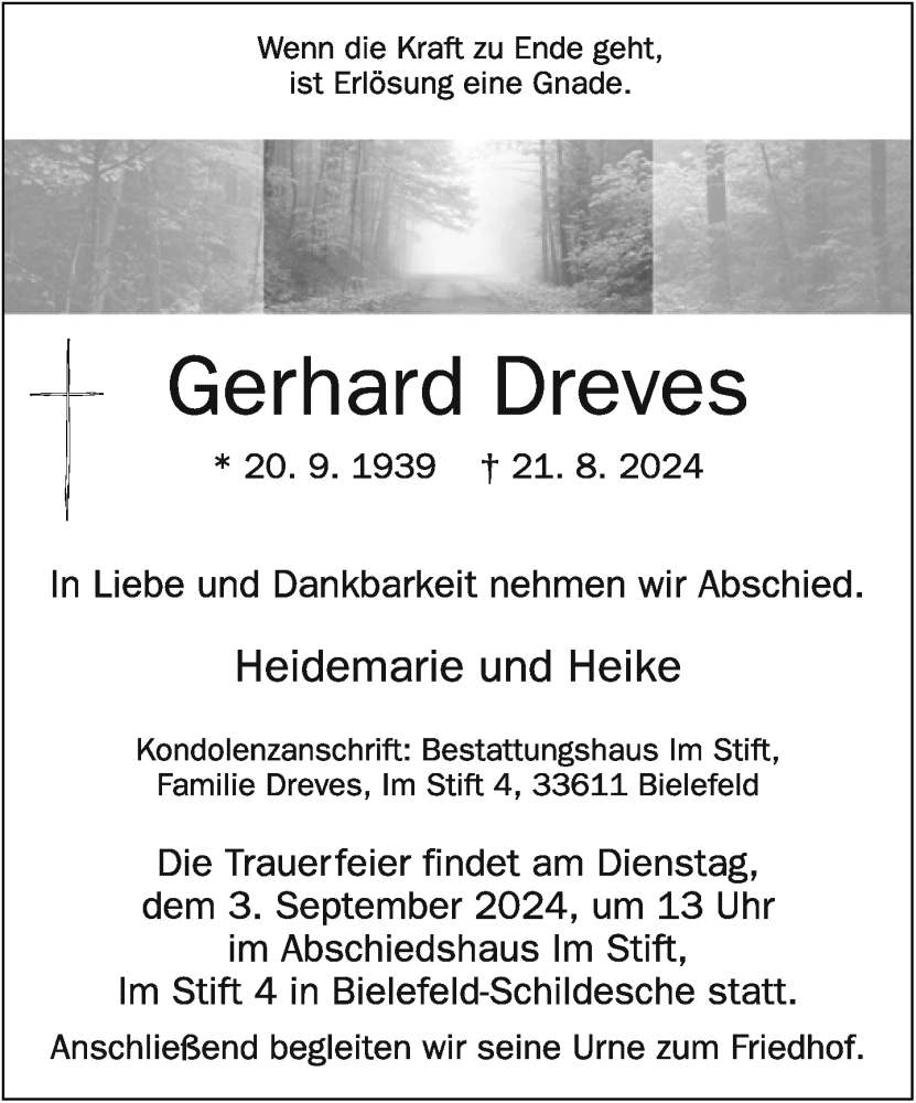 Hier finden Sie alle Traueranzeigen aus der Zeitung, die bisher für Gerhard Dreves erschienen sind. Weitere Traueranzeigen, die in der Zeitung erscheinen, werden hier ebenfalls aufgelistet