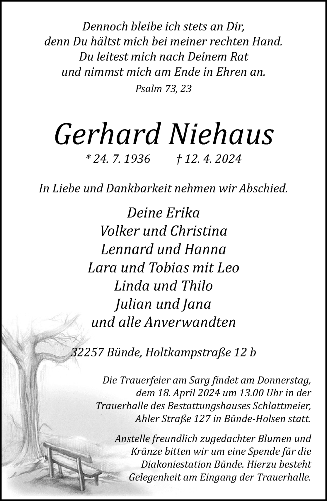 Hier finden Sie alle Traueranzeigen aus der Zeitung, die bisher für Gerhard Niehaus erschienen sind. Weitere Traueranzeigen, die in der Zeitung erscheinen, werden hier ebenfalls aufgelistet
