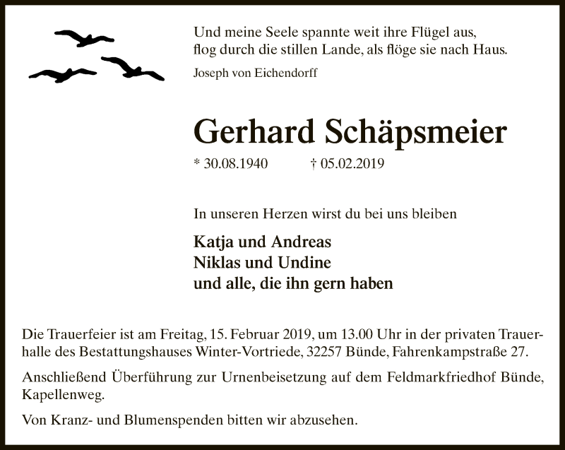 Hier finden Sie alle Traueranzeigen aus der Zeitung, die bisher für Gerhard Schäpsmeier erschienen sind. Weitere Traueranzeigen, die in der Zeitung erscheinen, werden hier ebenfalls aufgelistet