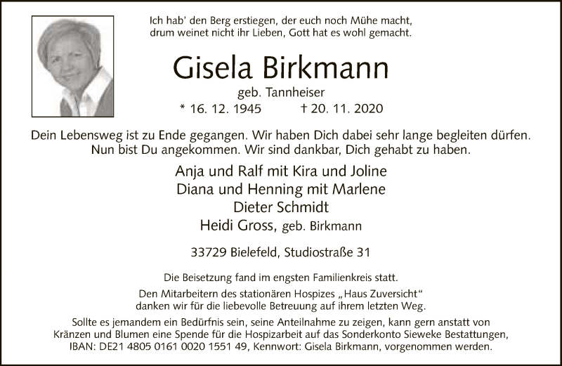 Hier finden Sie alle Traueranzeigen aus der Zeitung, die bisher für Gisela Birkmann erschienen sind. Weitere Traueranzeigen, die in der Zeitung erscheinen, werden hier ebenfalls aufgelistet