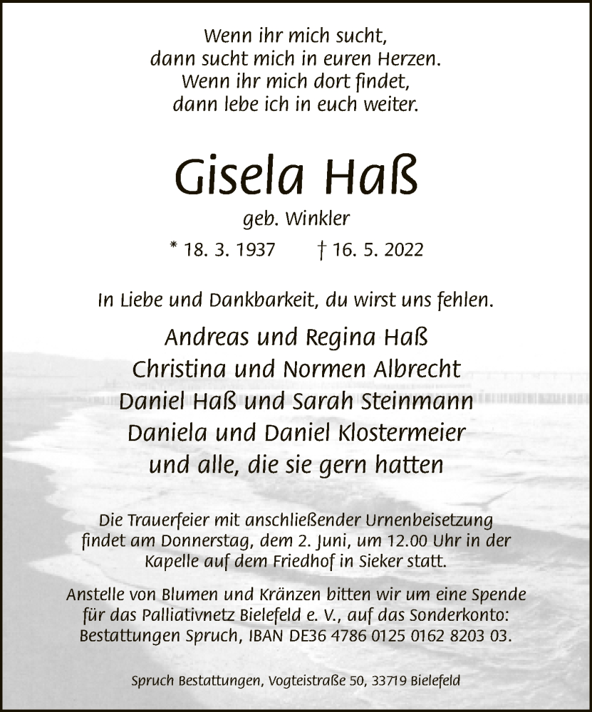 Hier finden Sie alle Traueranzeigen aus der Zeitung, die bisher für Gisela Haß erschienen sind. Weitere Traueranzeigen, die in der Zeitung erscheinen, werden hier ebenfalls aufgelistet