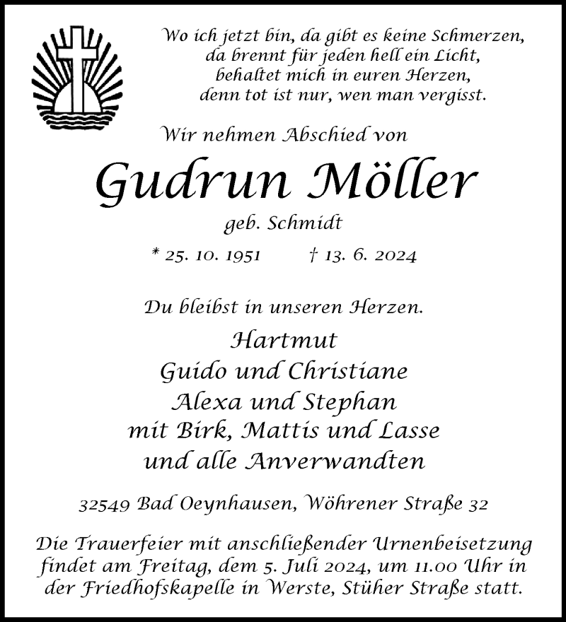 Hier finden Sie alle Traueranzeigen aus der Zeitung, die bisher für Gudrun Möller erschienen sind. Weitere Traueranzeigen, die in der Zeitung erscheinen, werden hier ebenfalls aufgelistet